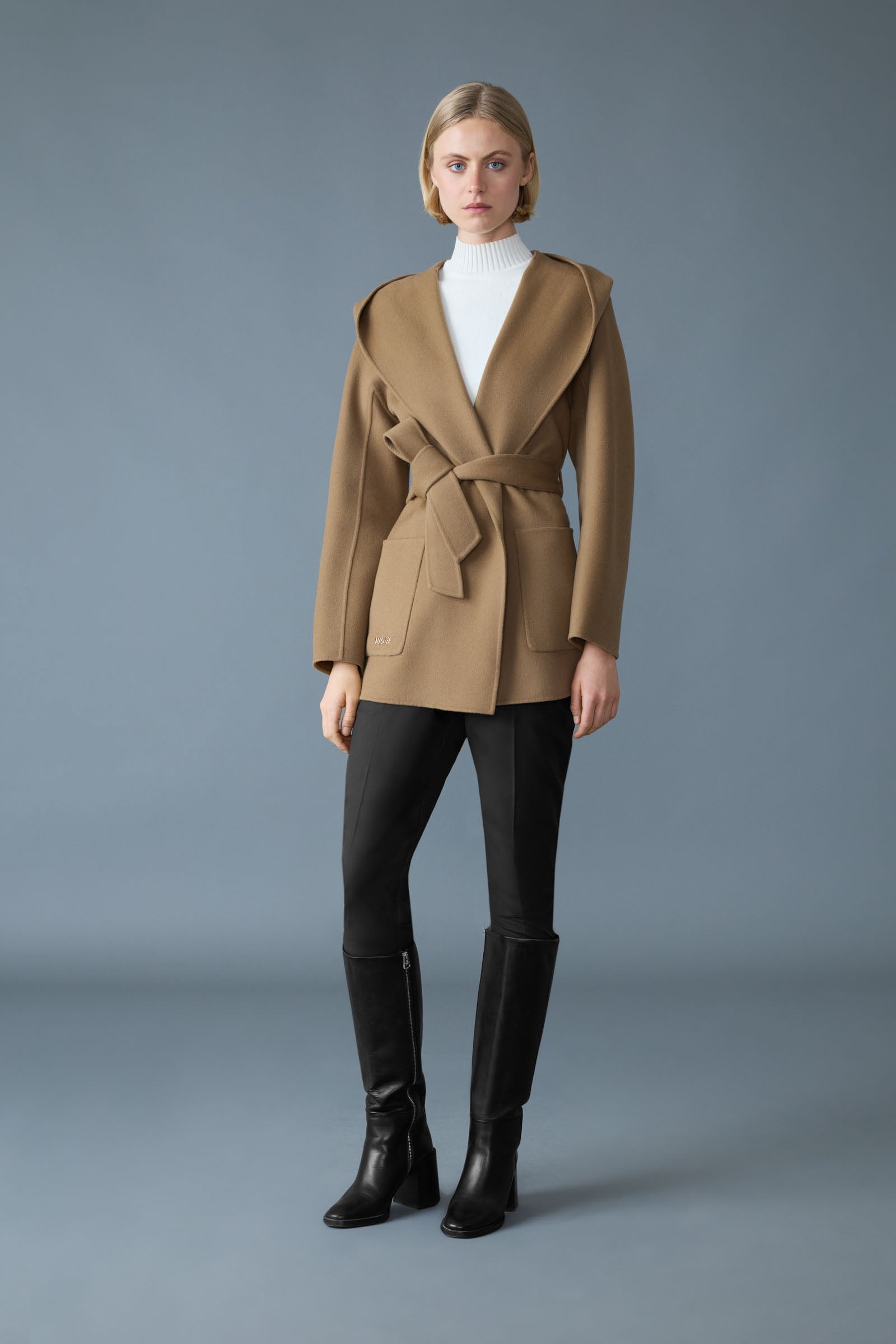 PAYA is a relaxed-fit wrap coat handmade from luxurious and responsibly-sourced double-face wool. Designed for transitional weather, it features a soft unlined construction and bold bathrobe-inspired silhouette. A wide lapel, dropped shoulders, and a tonal sash belt add to the casual luxe detailing.
